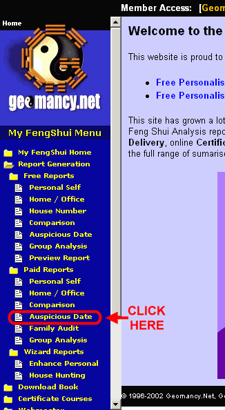 • Click on the Auspicious Date link, which opens up a Report Wizard on the right frame.