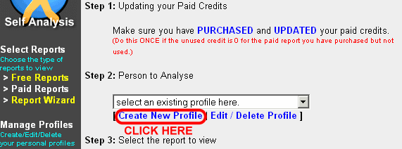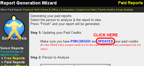 • Click on the Personal Self link, which opens up a Report Wizard on the right frame.
